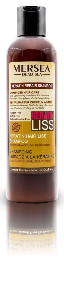 Vyhlazující keratinovy šampon na suché / barvené vlasy. Výrobce: Izrael Obnovuje hladinu vlhkosti ve vlasech s éterickými oleji a keratinu obohacený minerály z mrtvého moře. Toto ošetření regeneruje, uhlazuje. chrání a zároveň zlepšuje pružnost a strukturu vlasů, dodává lesk. Bez parabenu.Po mytí se doporučuje používání masky na vlasy Mersea